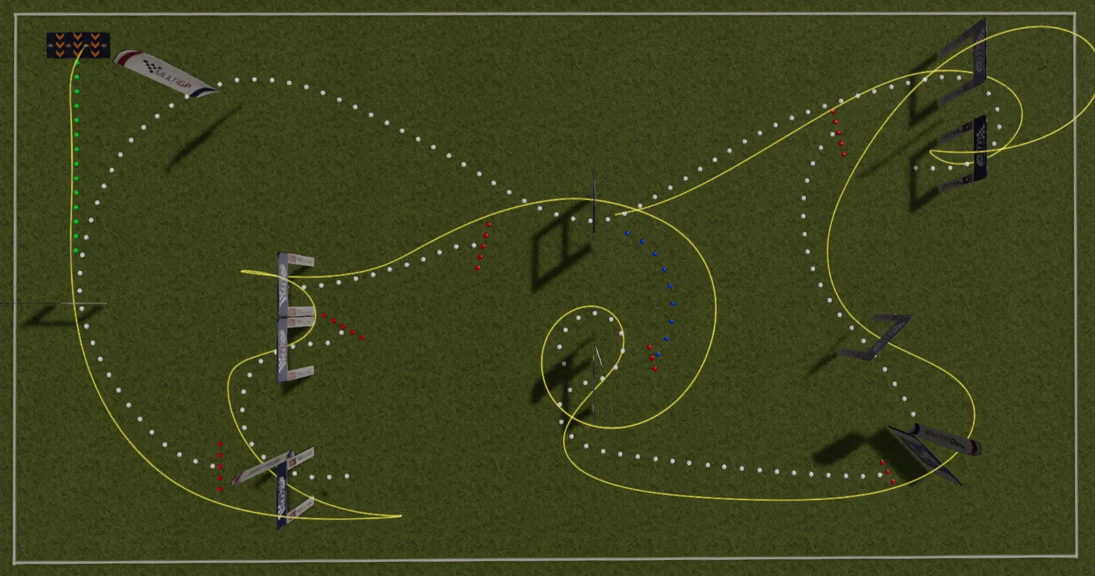 • The gates in the Sim MUST be the larger MultiGP sized ones included in the the template.